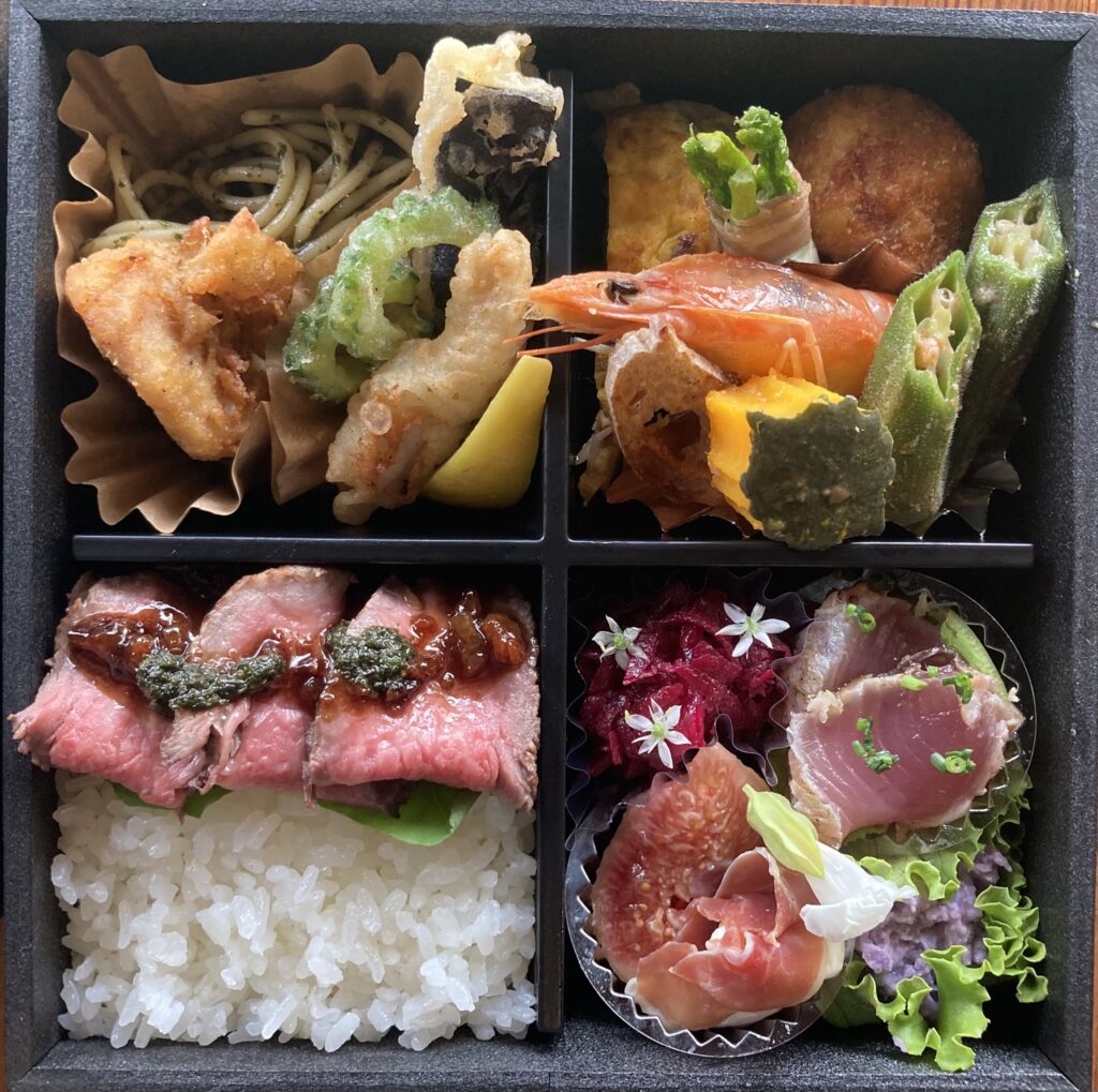 旬の食材をいろいろ少しずつ盛り合わせたお弁当です